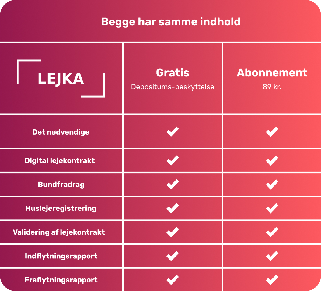 Så du skal bare vælge, om du vil betale 89 kr. om måneden eller lade depositummet stå hos LEJKA ApS.